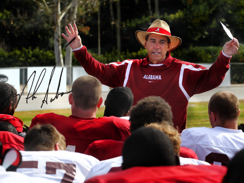 Nicholas Lou "Nick" Saban, Jr. is the head football coach of the University of Alabama, a position he has held since the 2007 season. Saban previously served as head coach of the National Football Leagues's Miami Dolphins and three other universities: Louisiana State University, Michigan State University and the University of Toledo. He appeared on the September 1, 2008, cover of Forbes magazine as "The Most Powerful Coach in Sports". Coach Saban's career record as a college head coach is 177-59-1.